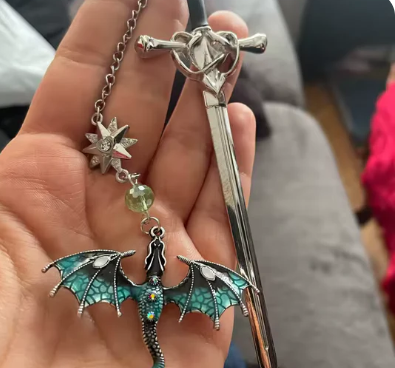 Our sword bookmark is crafted from durable metal alloy with detailed enamel accents on the dragon charm, giving it a premium weight and long-lasting finish.