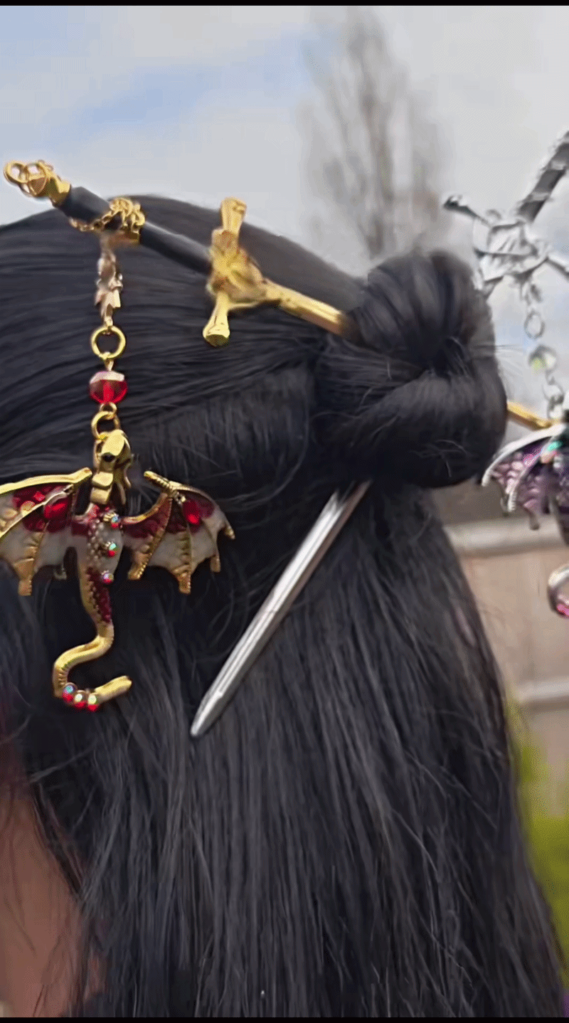 Intricate dragon detailing and a sleek sword design come together to create a piece that feels more like a collectible than an ordinary hairpin. ✨